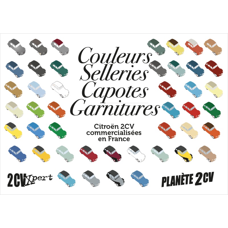 2 CV, la multitude des combinaisons entre les couleurs de carrosseries,