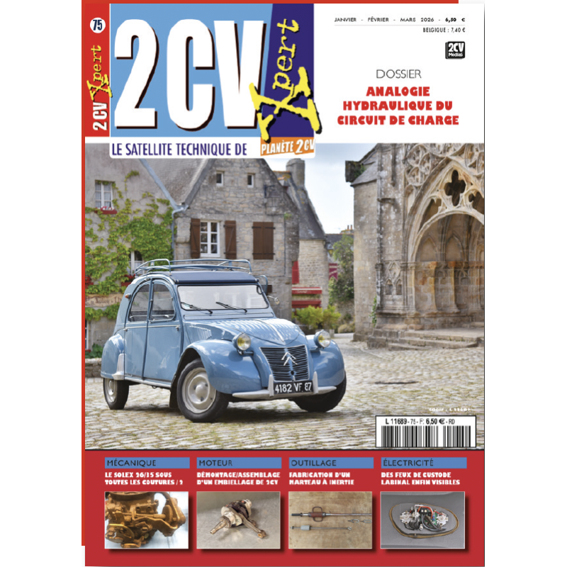 Le numéro 75 de 2 CV Xpert est disponible en kiosque en même temps que le Planète 2 CV numéro 152. En plus de l’habituelle hot-line de Jacques Barcat et des rubriques habituelles, vous trouverez un guide détaillé sur le démontage d’un embiellage de 2 CV, un dossier sur l’analogie hydraulique du circuit de charge, la deuxième partie de l’étude complète du carburateur Solex 26/35… 2 CV Xpert vous propose une solution pour améliorer la visibilité des feux de custode Labinal et vous apprend pourquoi et comment fabriquer un marteau à inertie. Bonne lecture !